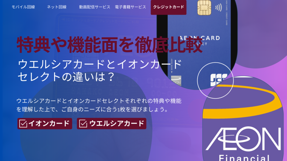 今回の記事では、イオンカードの中からウエルシアカードをピックアップし、代表的なイオンカードであるイオンカードセレクトとの違いについてご紹介いたします。 クレジットカードをご検討中の方や、2枚目や3枚目のカードをお作りになりたい方は、ぜひご参考にしてください。