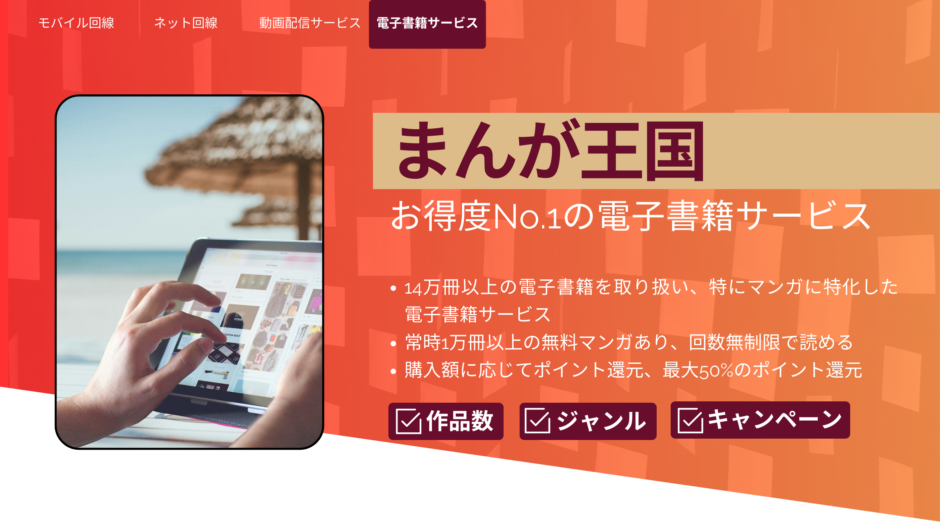 - 14万冊以上の電子書籍を取り扱い、特にマンガに特化した電子書籍サービス