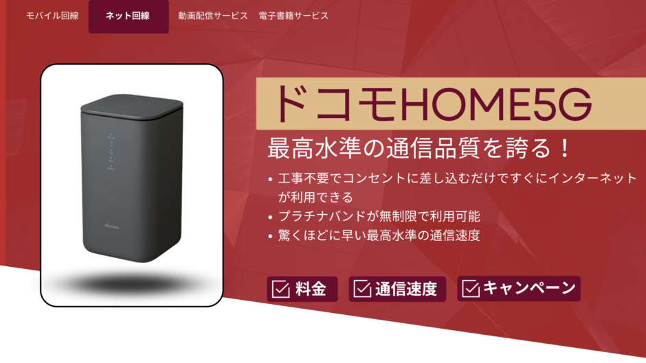 以下に、docomoホーム5Gの料金プランの詳細を記載しています。