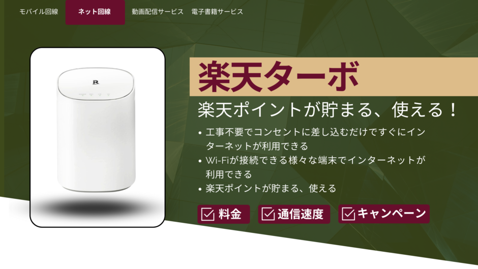 Rakuten Turboは、毎月の支払いで楽天ポイントをためて利用できる唯一のホームルーターです。